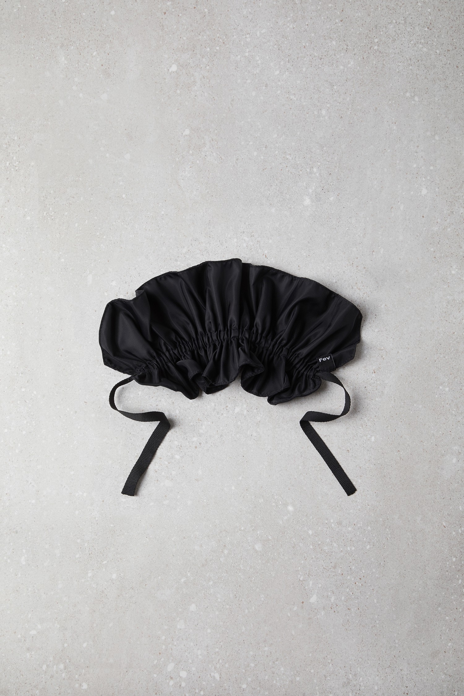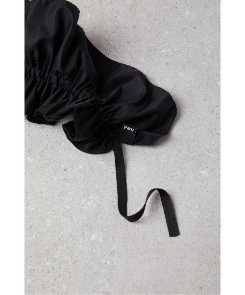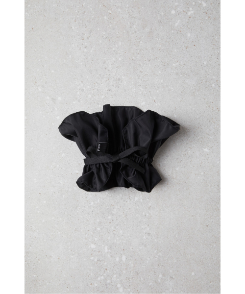 양쪽 끈으로 여미는 구조로 다양한 연출이 가능한 아이템.