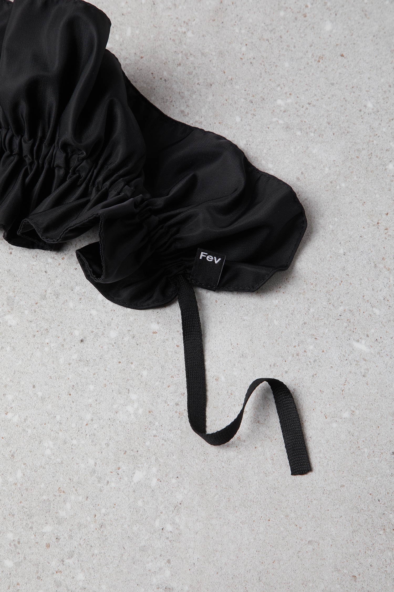 - 러플이 고정된 구조로 안정감 있는 실루엣 유지.