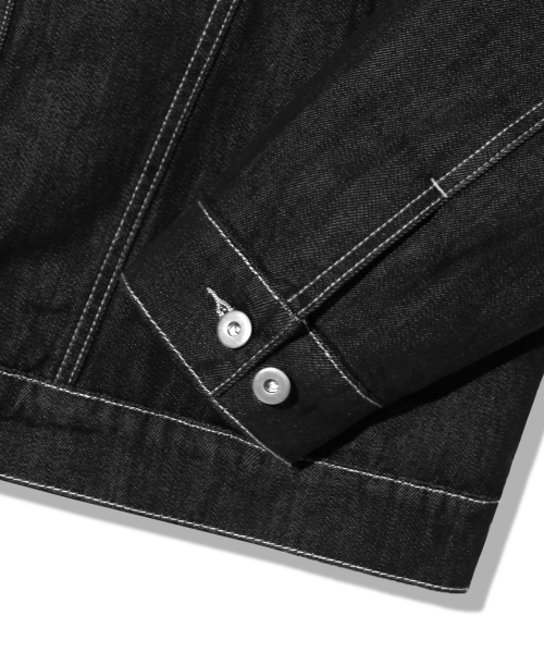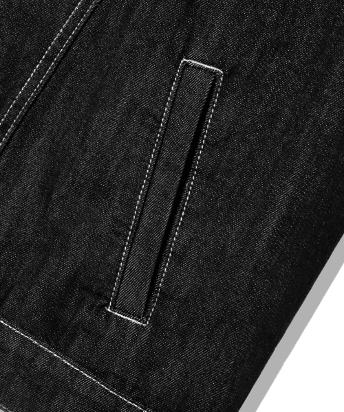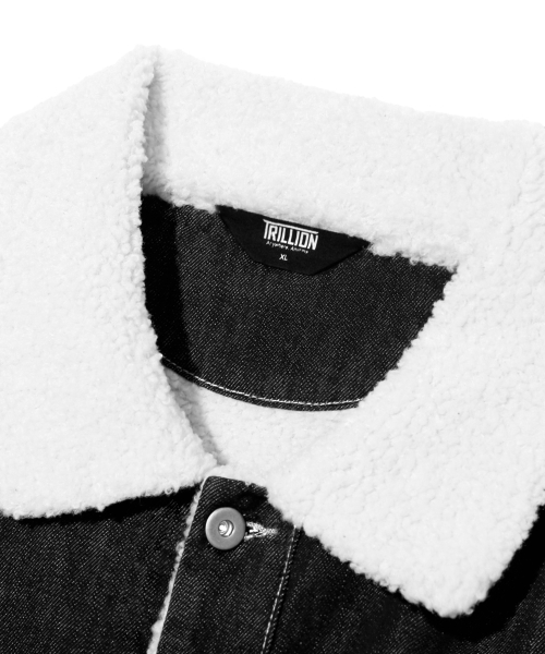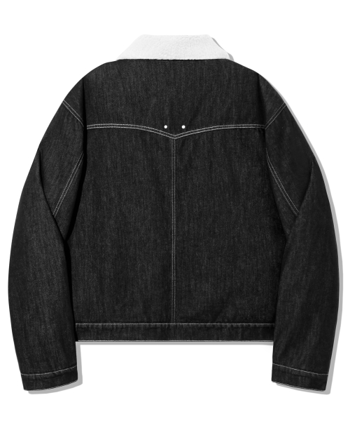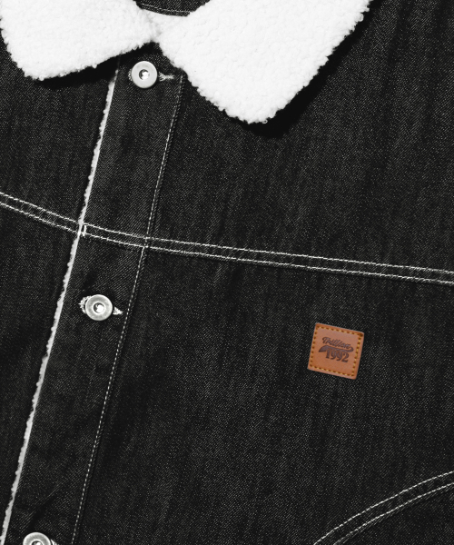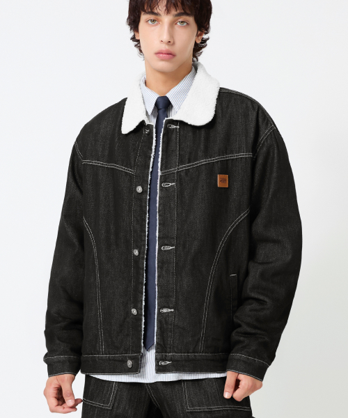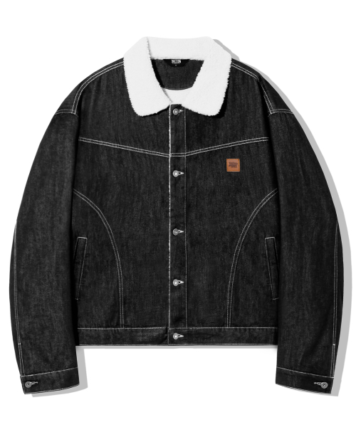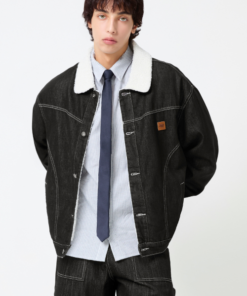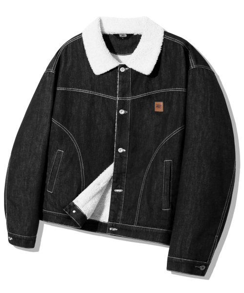 레더 패치 쉐르파 데님 자켓_블랙