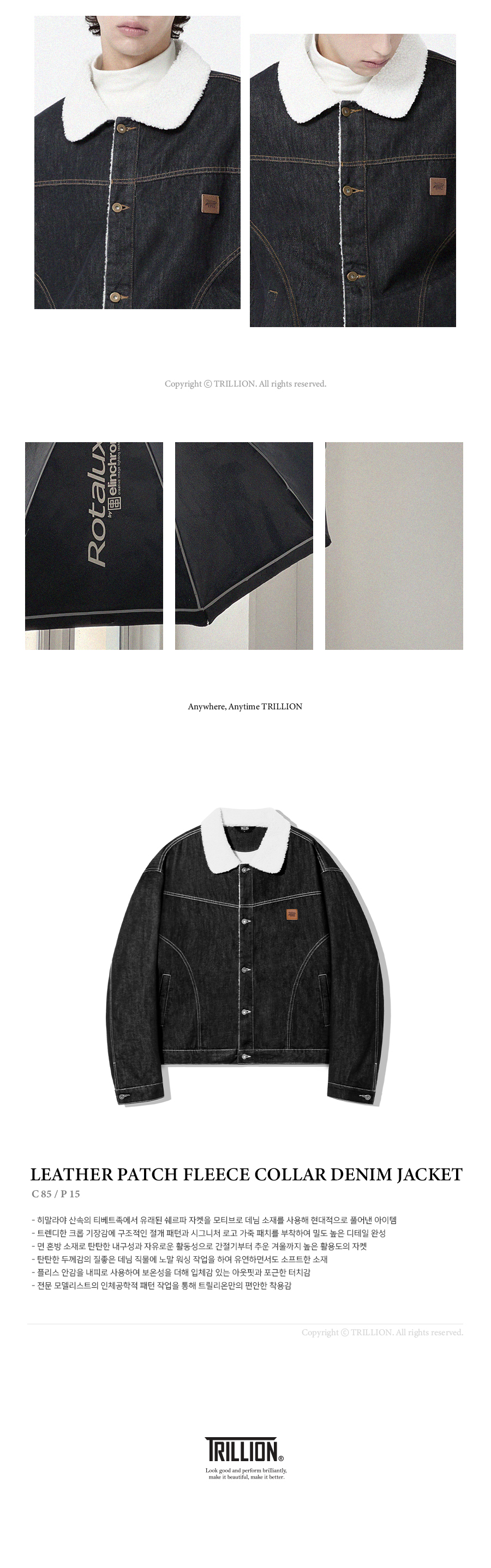 트릴리온(TRILLION)은 클래식, 빈티지, 아웃도어, 어반 등의 스타일을 베이스로 트릴리온만의 컨템포러리 감성을 더해 높은 퀄리티의 제품을 합리적인 가격에 제시합니다. 단 하나의 제품에도 만족감을 느낄 수 있는 가치를 추구합니다.
