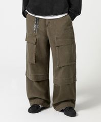 스톤 워시드 카고 포켓 코튼 팬츠_카키