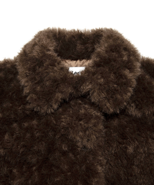 우먼 신세틱 퍼 하프 코트 브라운