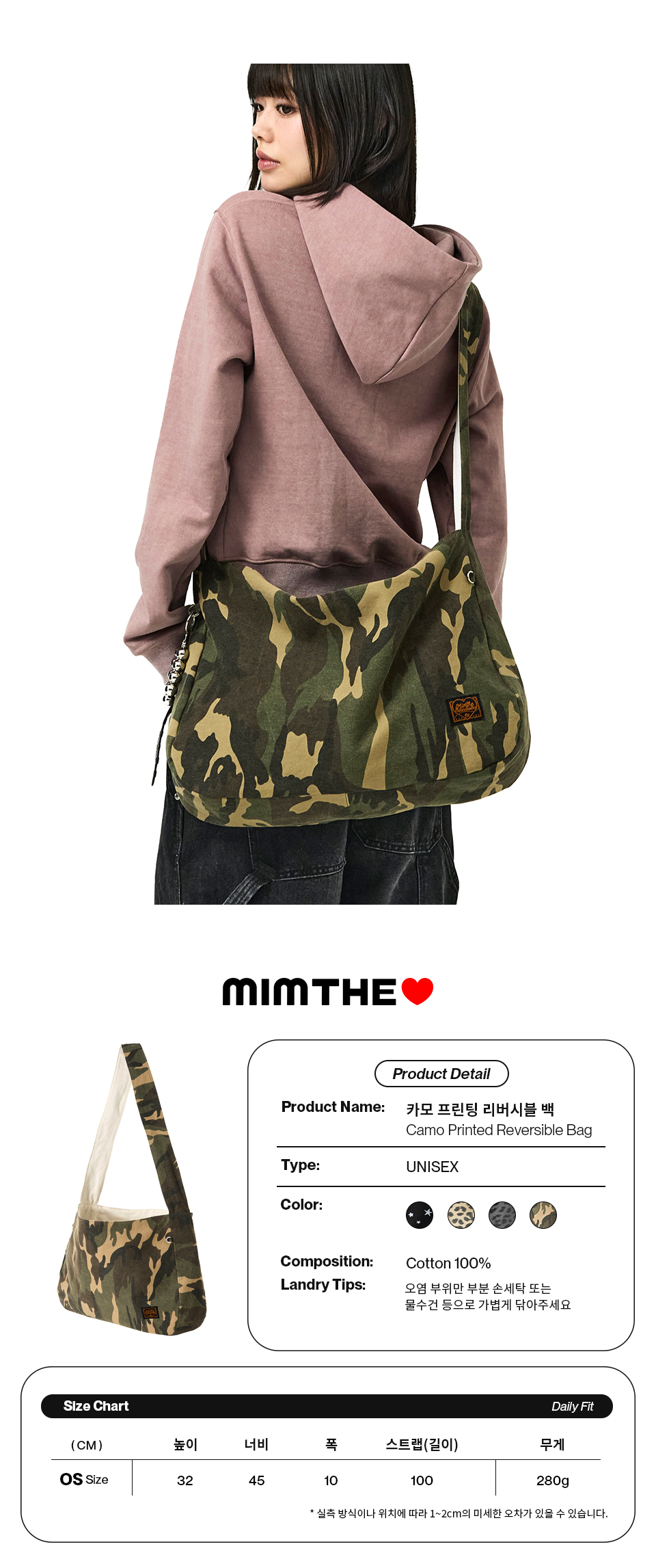 카모 프린팅 리버시블백