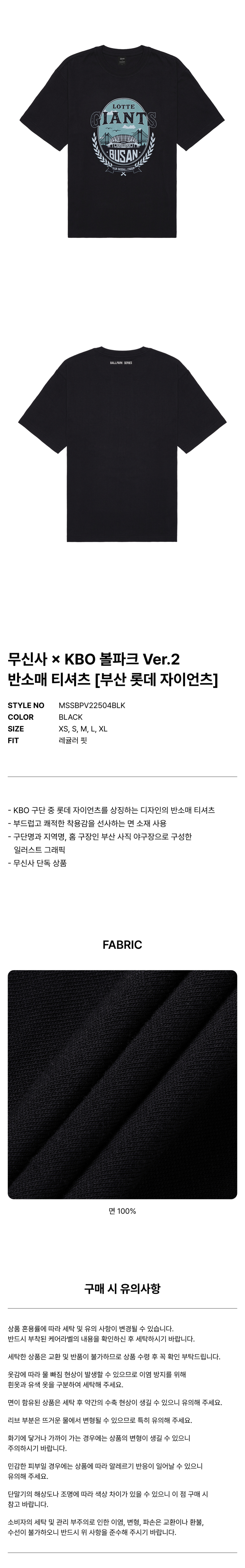 무신사 x KBO 볼파크 Ver.2 반소매 티셔츠 블랙 [부산 롯데 자이언츠]