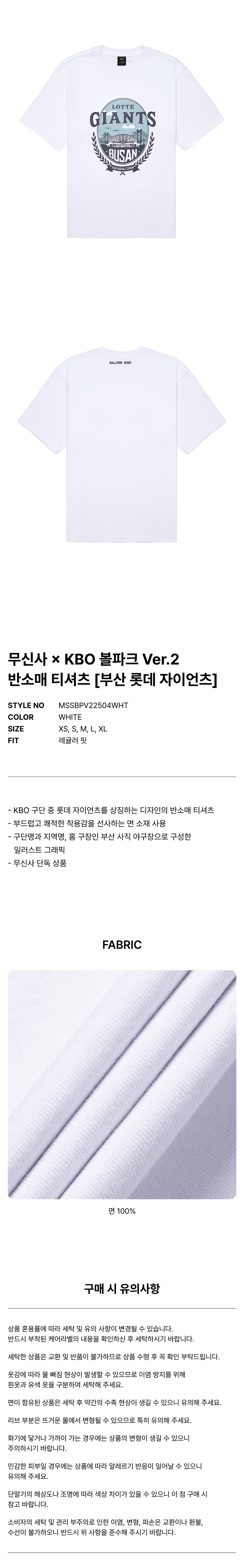무신사 x KBO 볼파크 Ver.2 반소매 티셔츠 화이트 [부산 롯데 자이언츠]