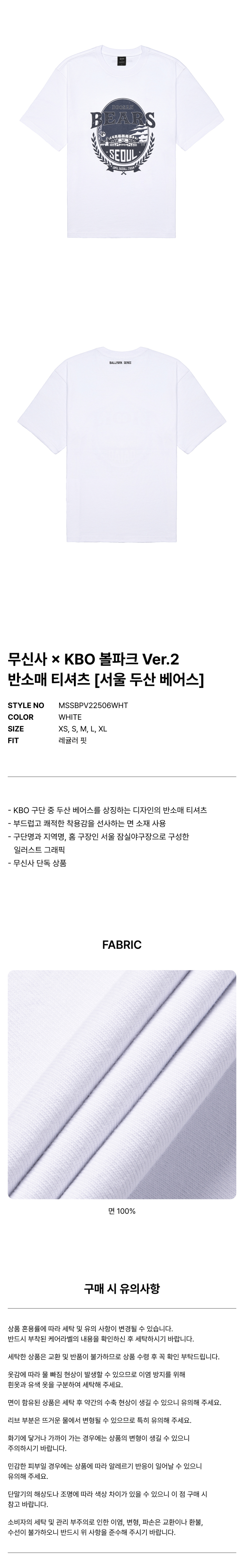 무신사 x KBO 볼파크 Ver.2 반소매 티셔츠 화이트 [서울 두산 베어스]