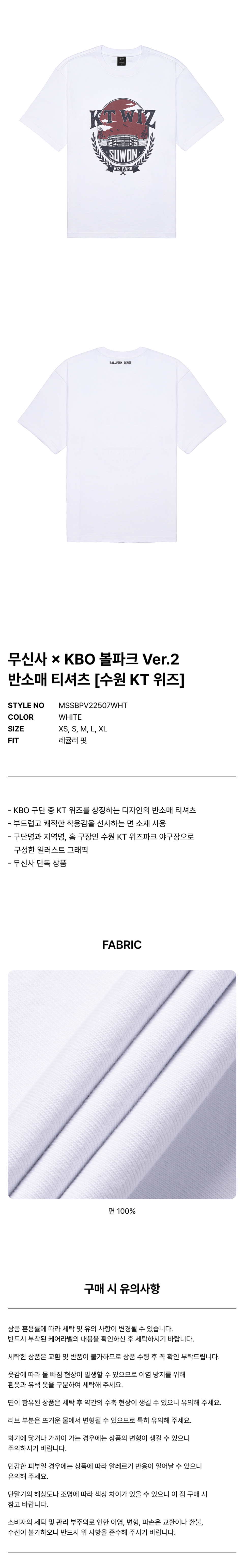 무신사 x KBO 볼파크 Ver.2 반소매 티셔츠 화이트 [수원 KT 위즈]