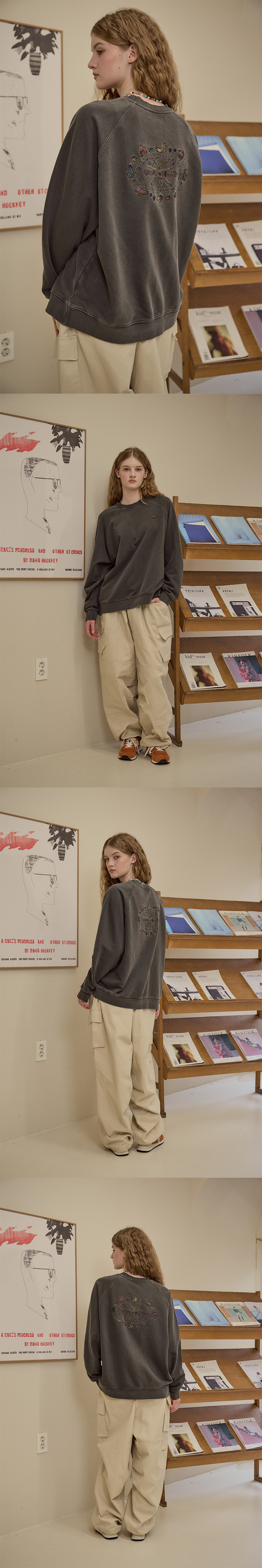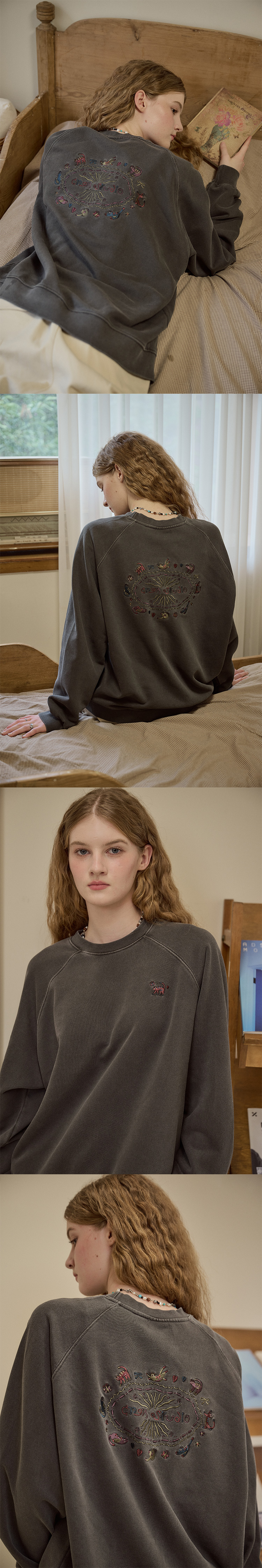 캣 스티치 레글런 피그먼트 맨투맨 고스트그레이