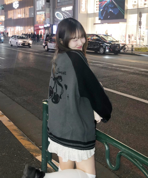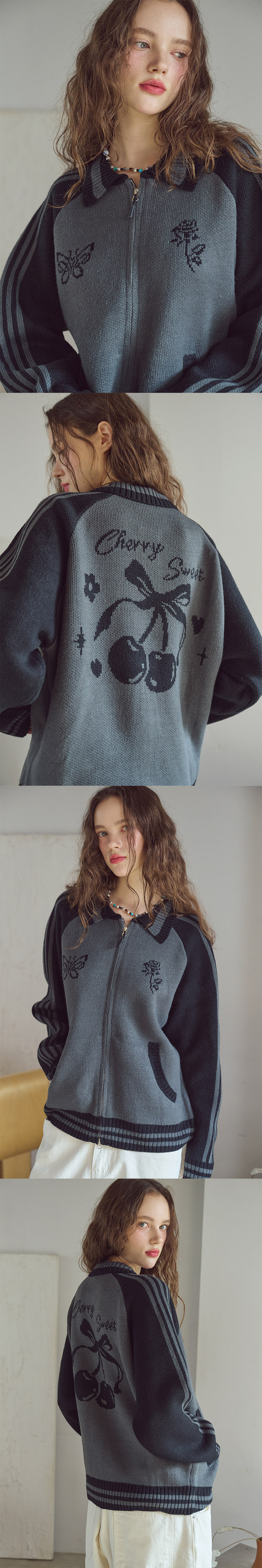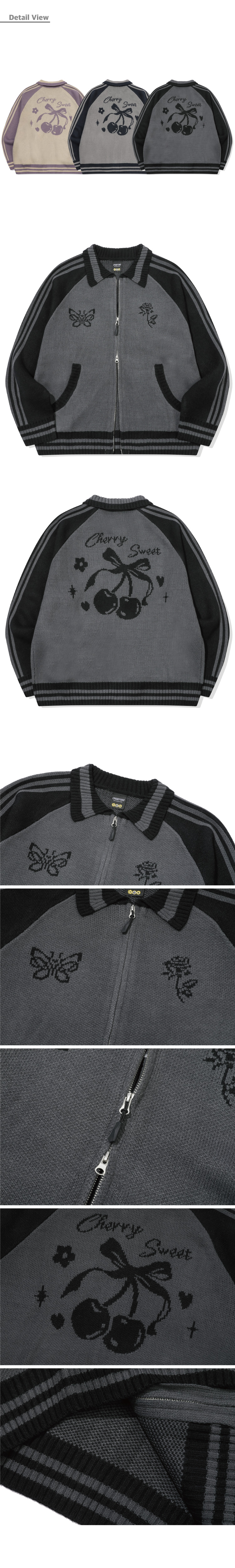 [2-WAY] 스윗 체리 니트 집업 블랙