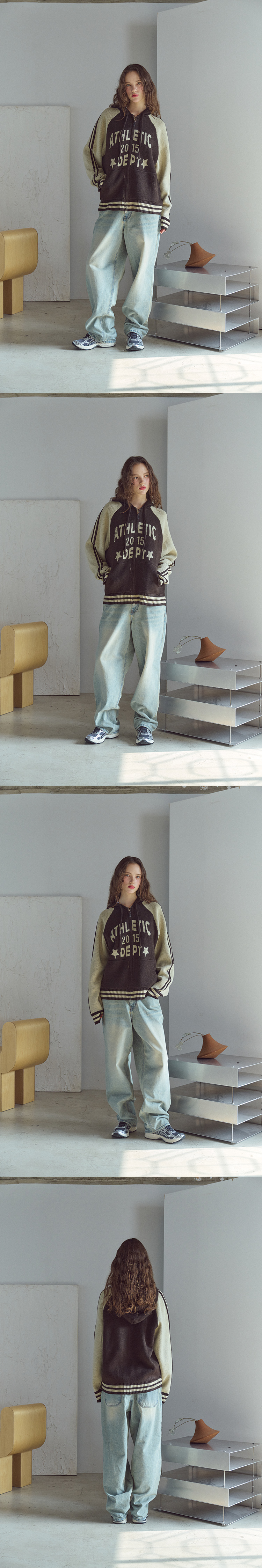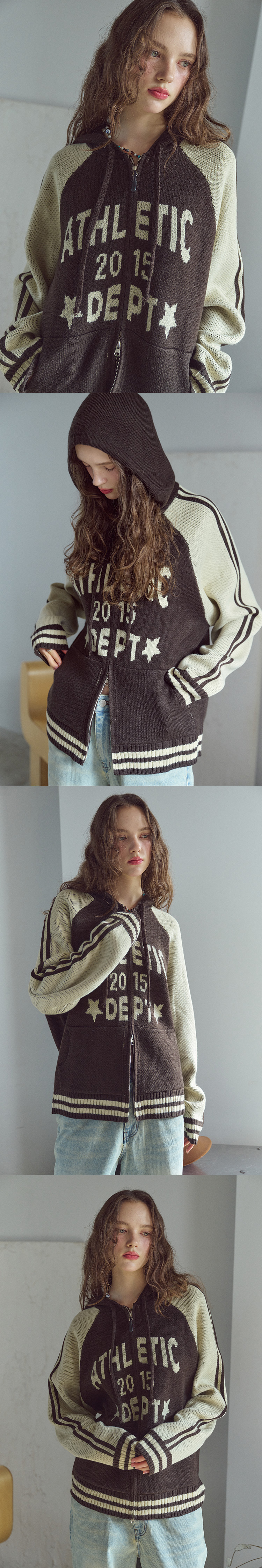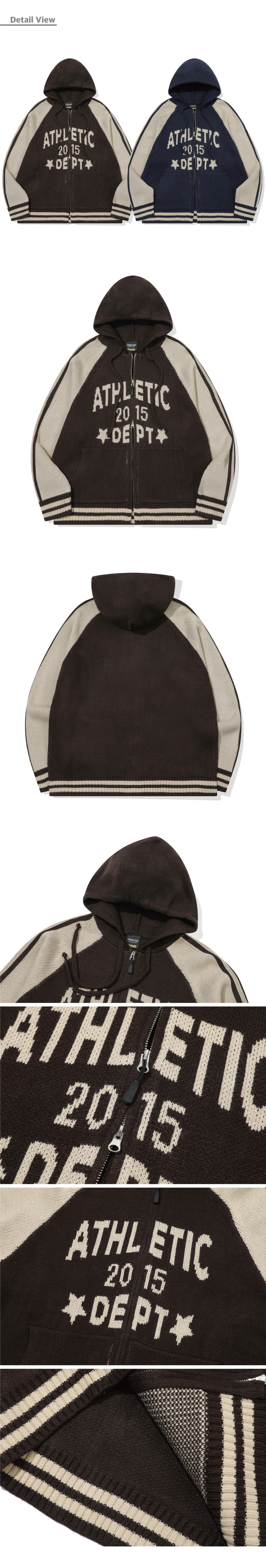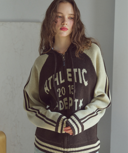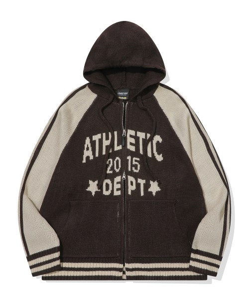 [2-WAY] 애슬레틱 후드 니트 집업 브라운