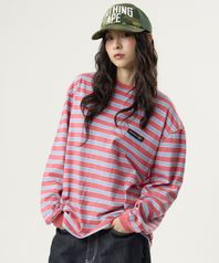 아이비 스트라이프 라운드 롱슬리브 티셔츠 핑크