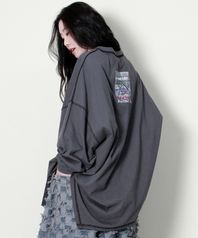 오버 사이즈 언발란스 긴팔 티셔츠 차콜