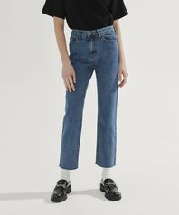 스트레이트 핏 커팅 데님 팬츠 [블루]