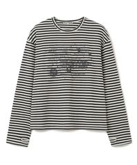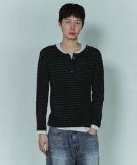 글리치드 텍스트 스트라이프 롱 슬리브 [그레이]