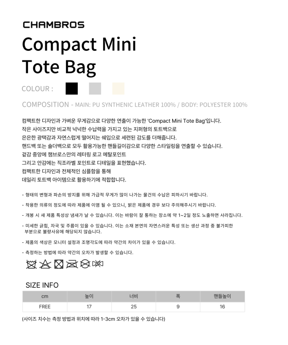 컴팩트 미니 토트백[3COLOR]
