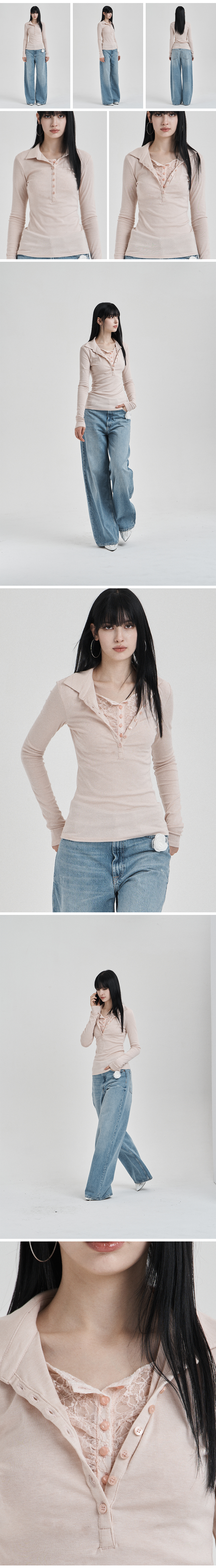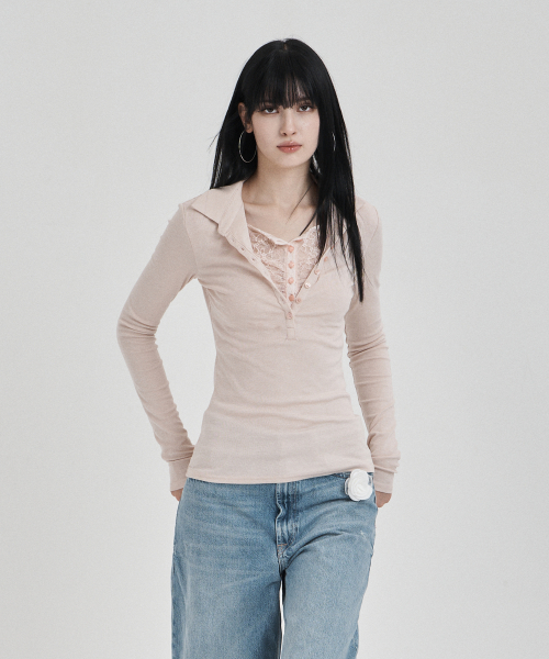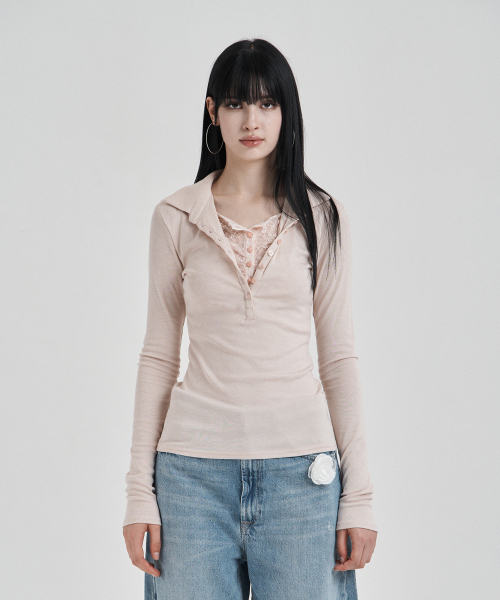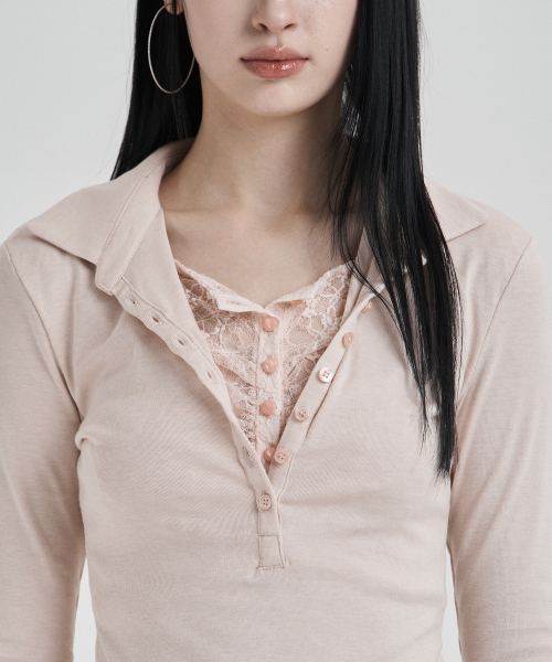 Pink Lace layered longsleeve polo shirts