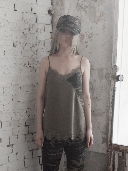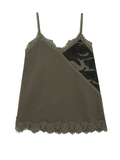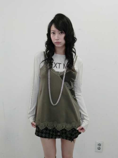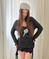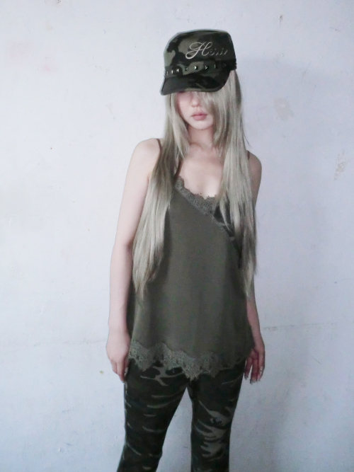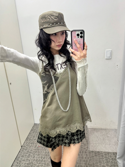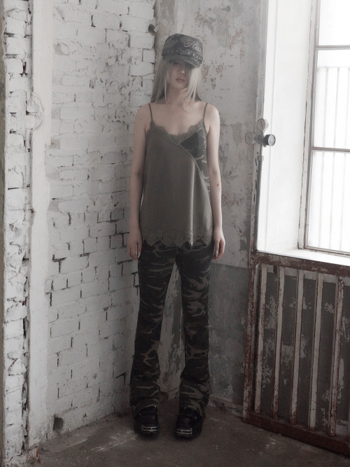 버튼 스트라이프 레이스 탱크 탑 (라이트그레이)
