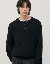 이지온 세미 오버핏 헨리넥 니트 [블랙]