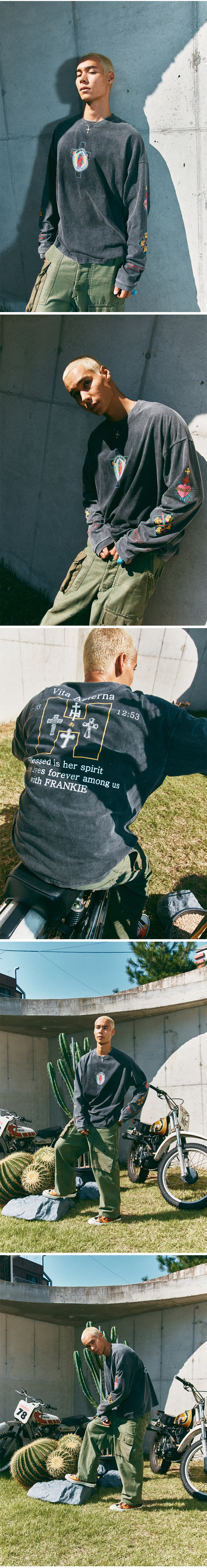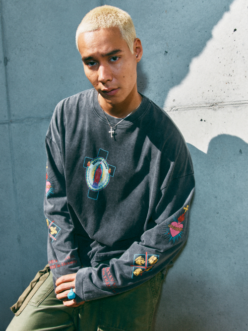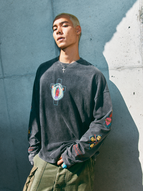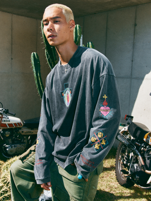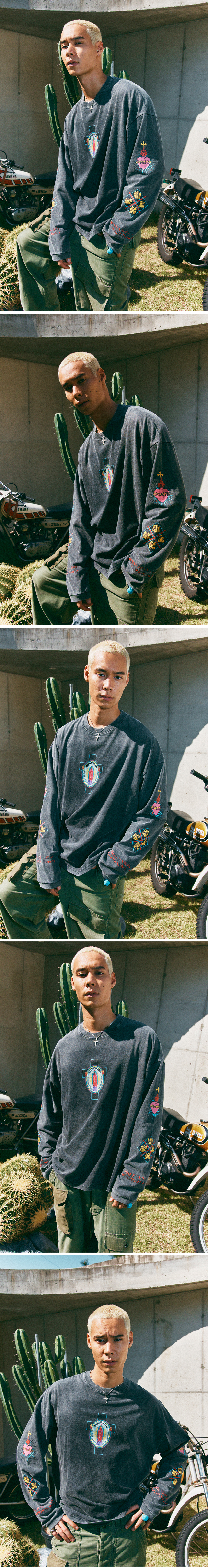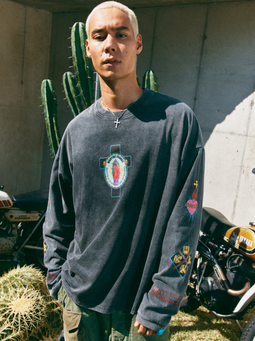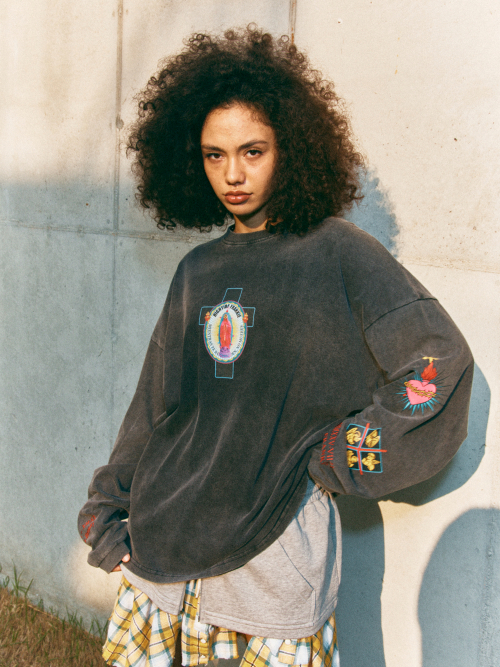 소매와 뒷판엔 멕시코 카톨릭 전통의 성심 아이콘과