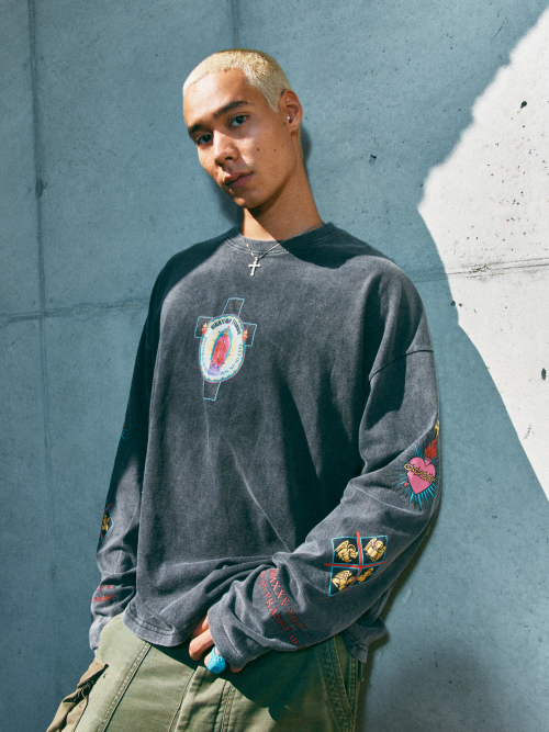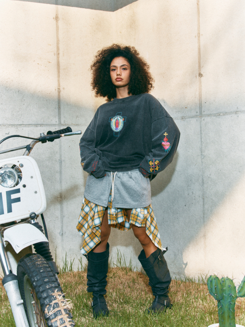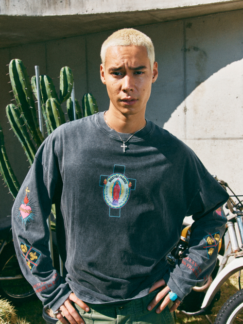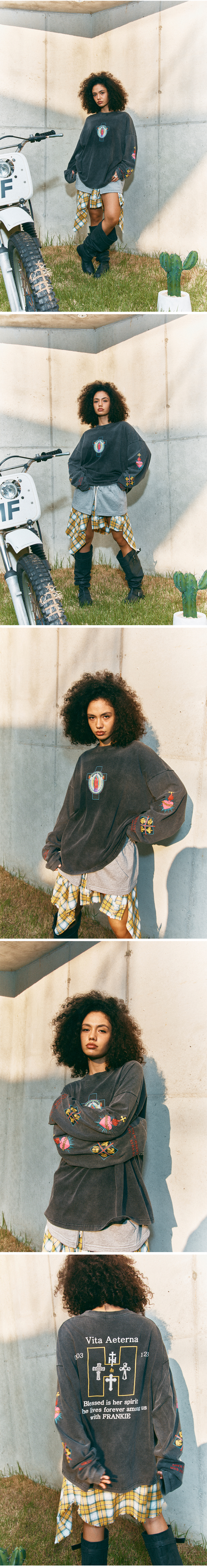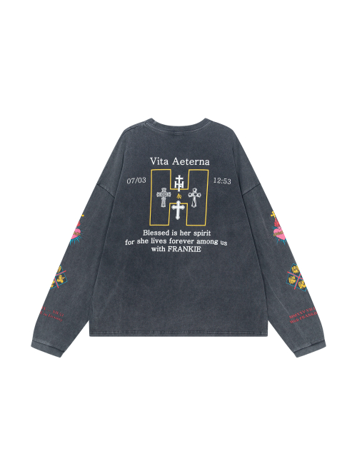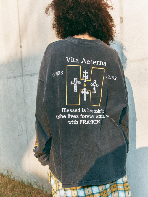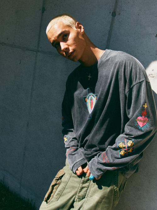 소매와 뒷판엔 멕시코 카톨릭 전통의 성심 아이콘과