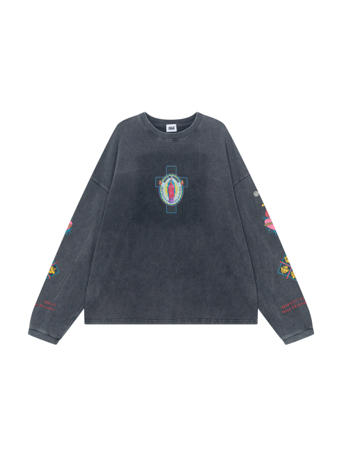 과달루페의 성모를 그래픽으로 앞면 가슴에
