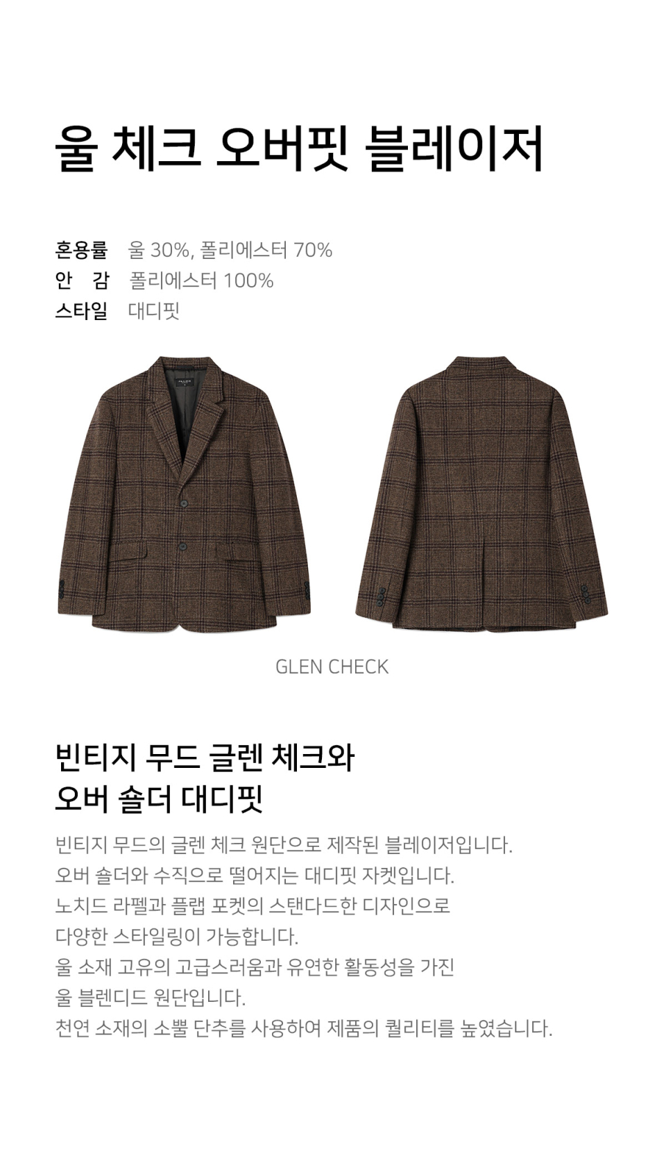 울 체크 오버핏 블레이저 (GLEN CHECK)