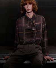 체크 프린트 스카프 셔츠[Brown(UNISEX)]_UTS-FS64