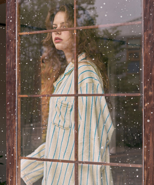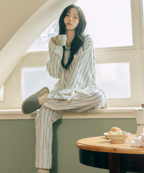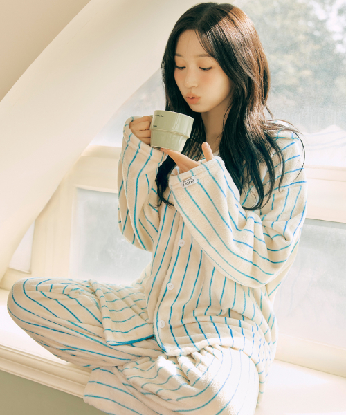 플러피 크리미 긴팔 커플 수면 잠옷 세트