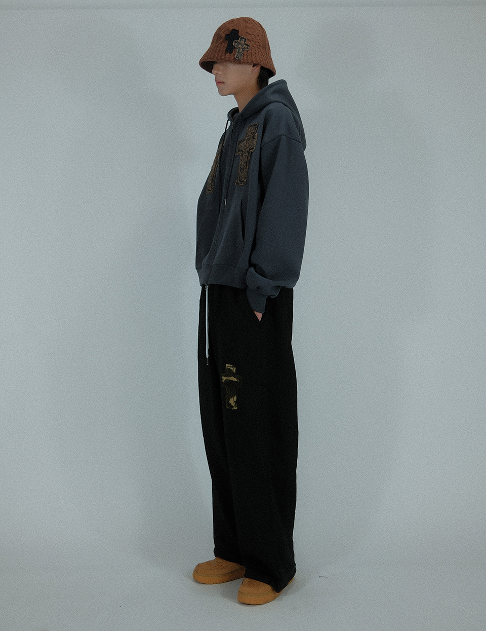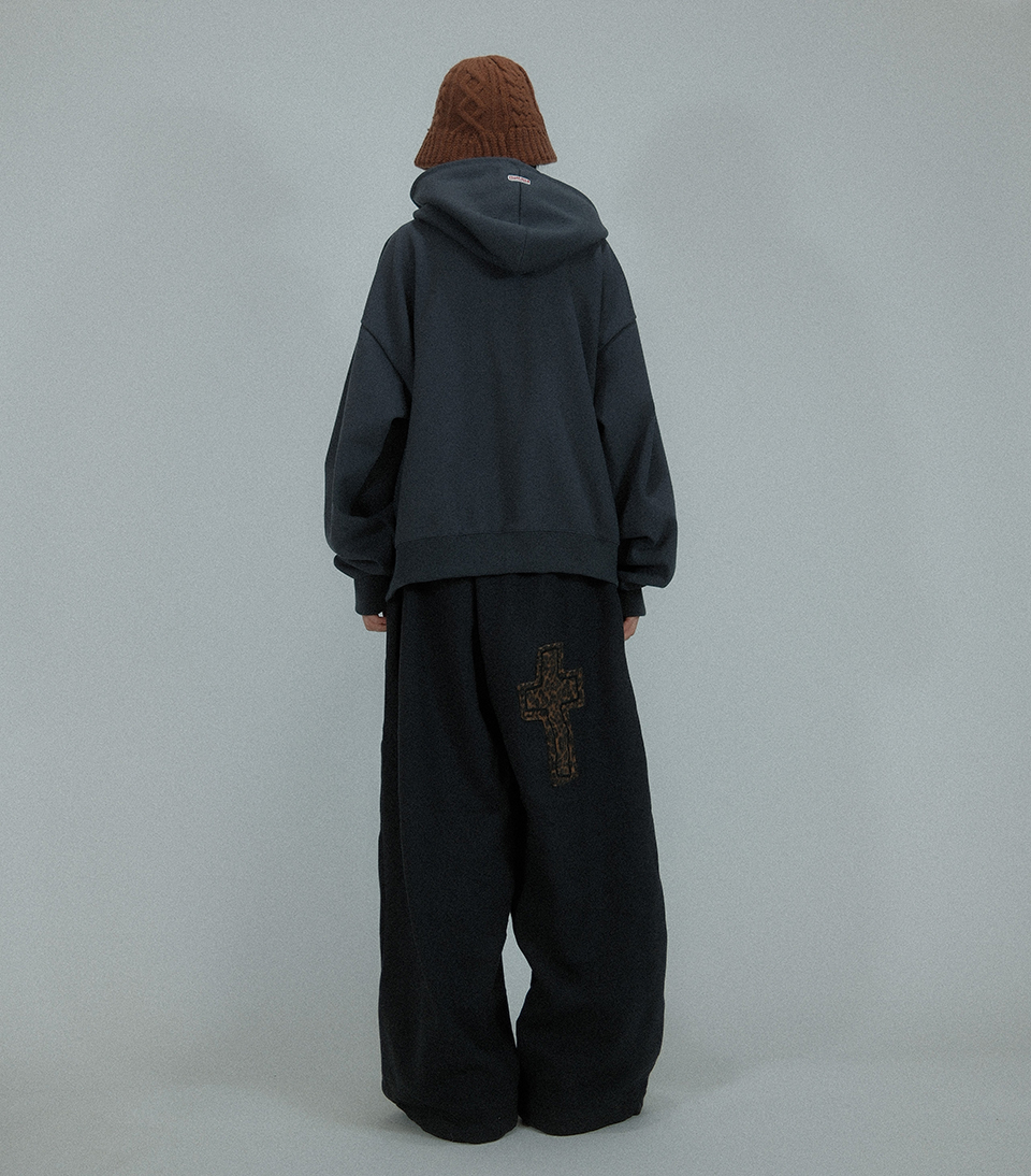 Angel And Ribbon 자수 핀턱 2-Way 와이드 트레이닝 스웨트 팬츠 AP1002 (블랙)