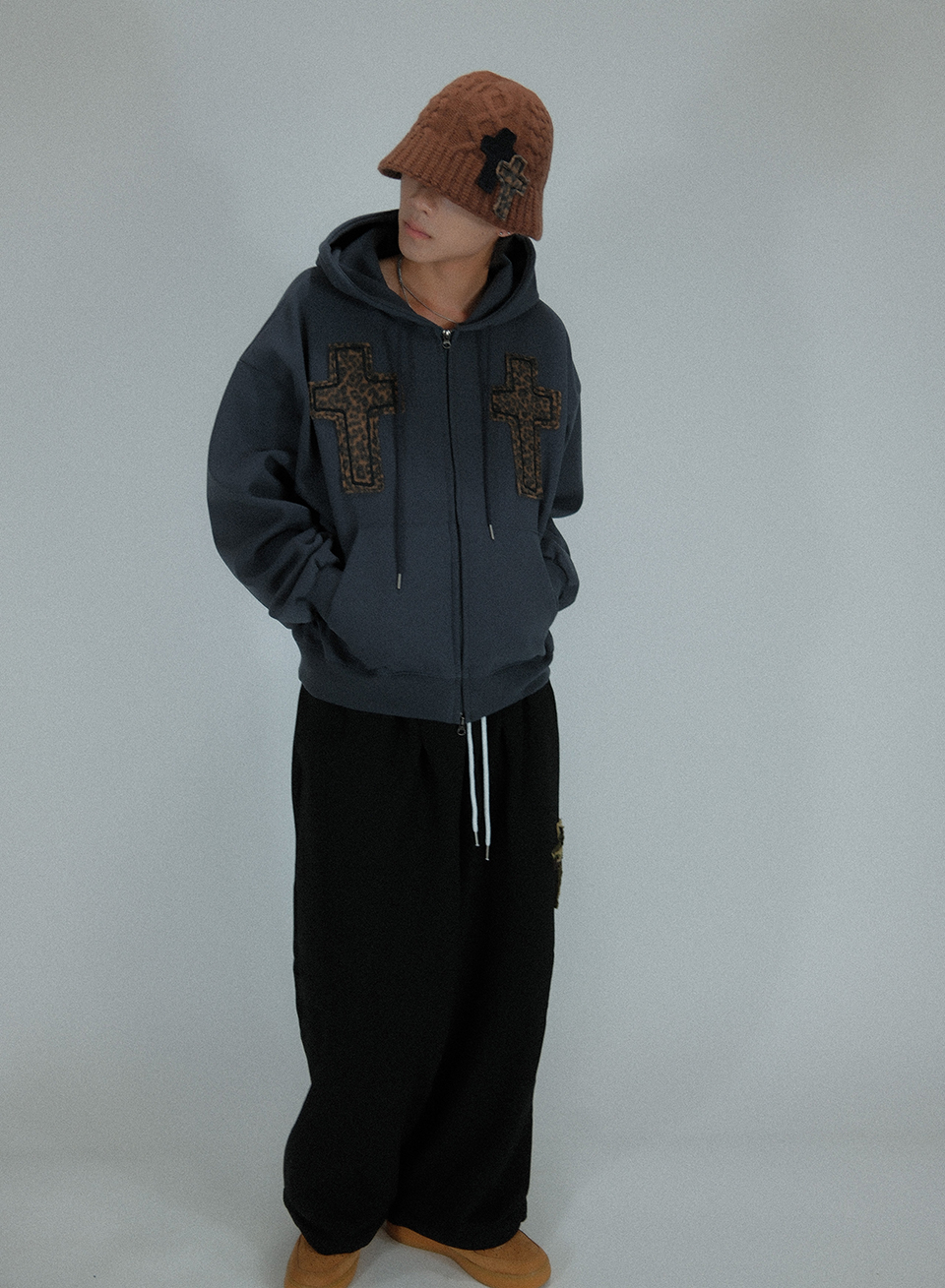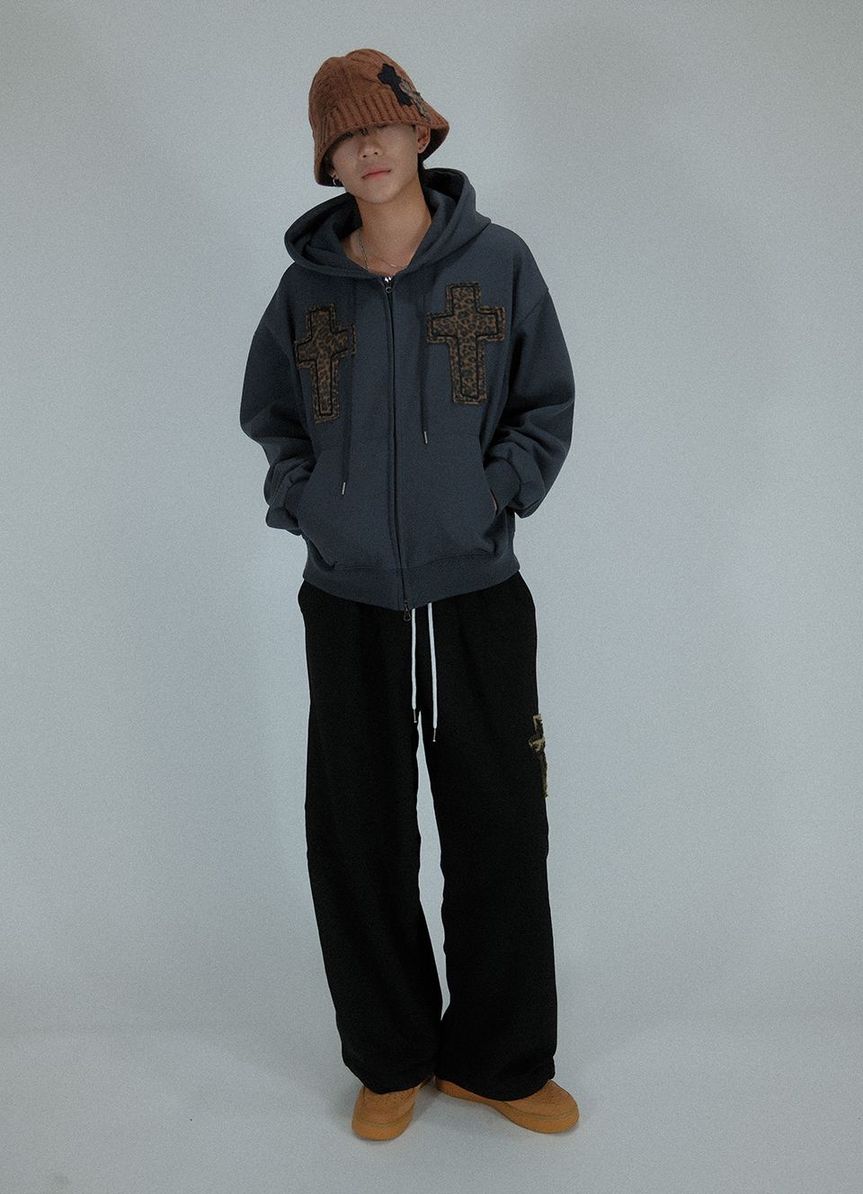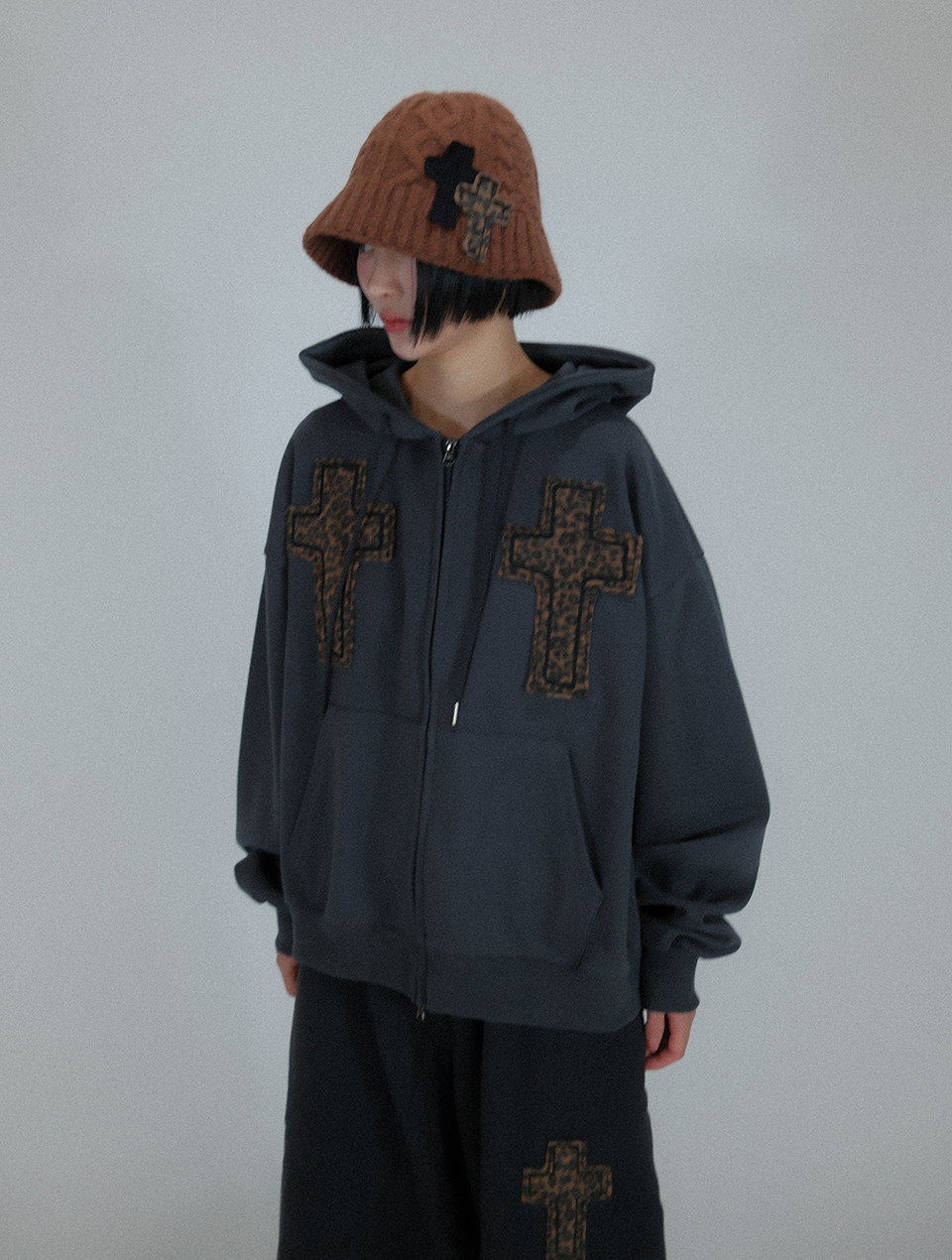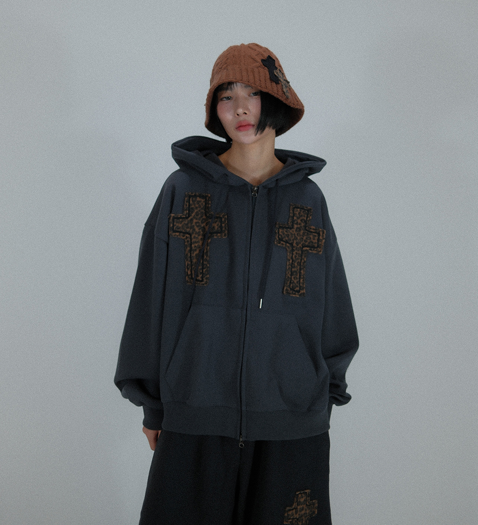 Striking Cross Sweat Hood Zip-Up ((dark gray))