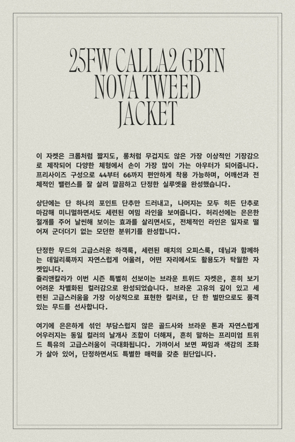 25FW 칼라2 GBTN 노바 트위드자켓 브라운