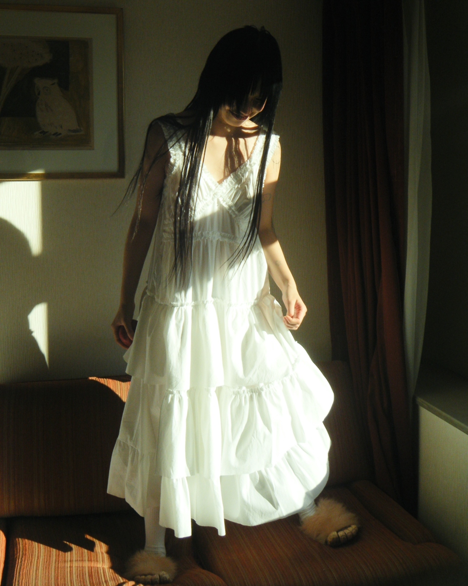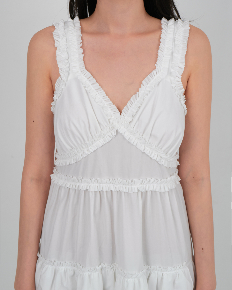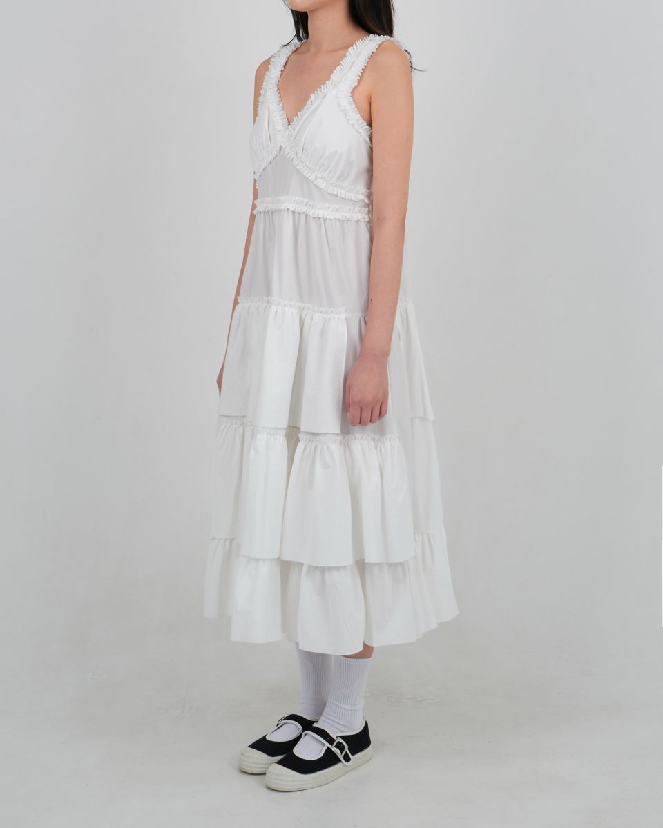 CHEST FRILL LONG DRESS_OFF WHITE