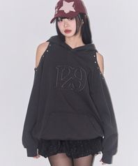 129 컷아웃 오버핏 후드티 차콜