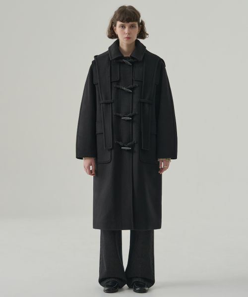 소프트 캐시미어 후드 스카프 더플 코트 [BLACK]
