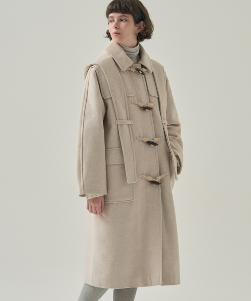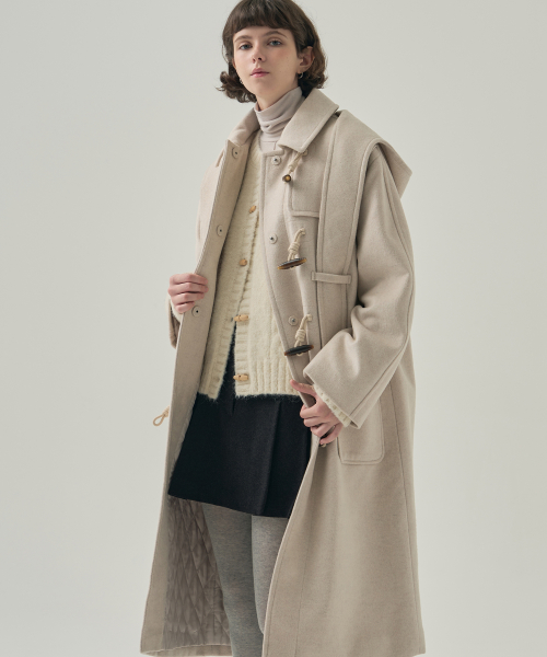 소프트 캐시미어 후드 스카프 더플 코트 [CREAM]