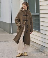 알파카 부클 더플 후드 코트 [BROWN]