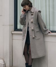소프트 캐시미어 후드 스카프 더플 코트 [M.GREY]