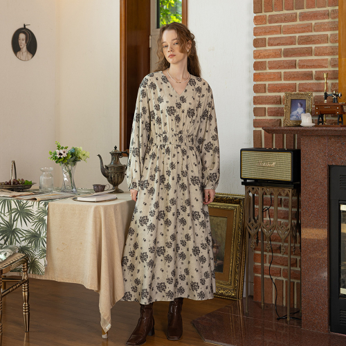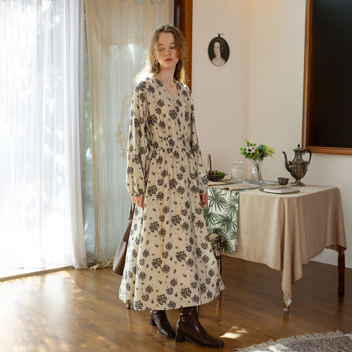 PM_Floral waist banding dress_LIGHT BEIGE