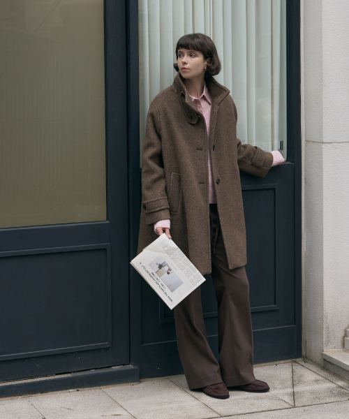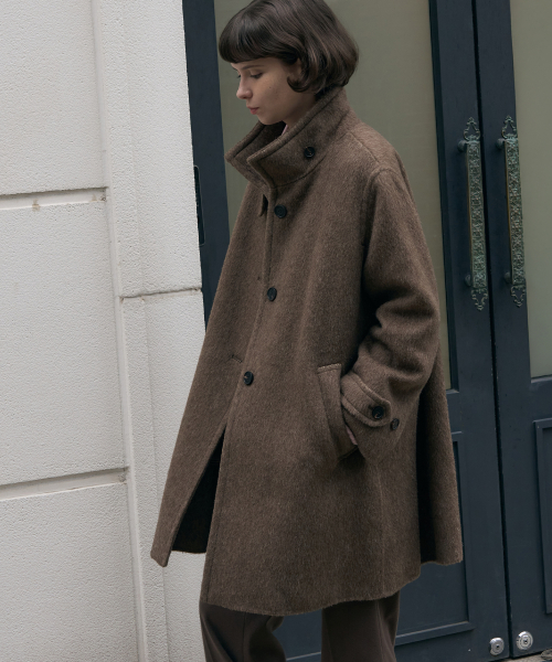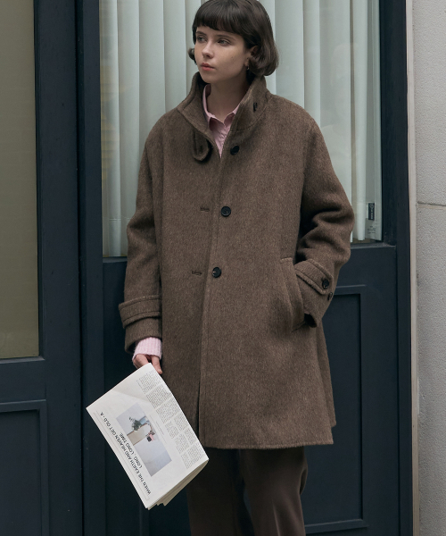 래빗 앙고라 울 핸드메이드 플레어 하프 코트 [M.BROWN]