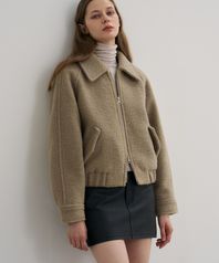 알파카 부클 밴딩 집업 숏 코트 [KHAKI GREY]
