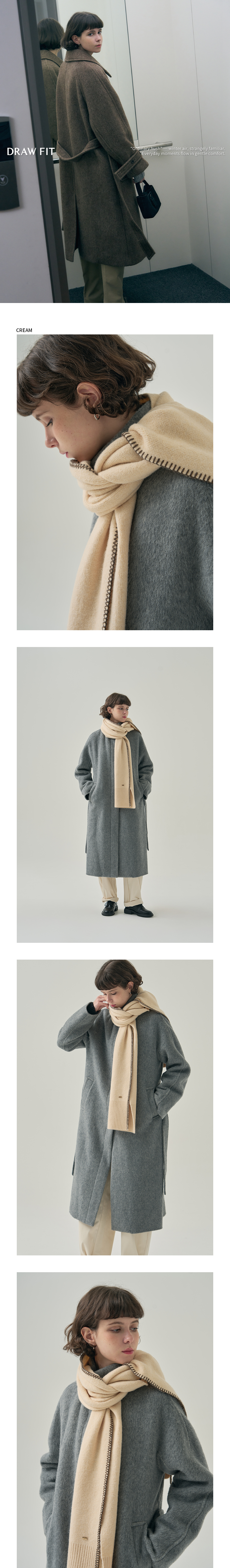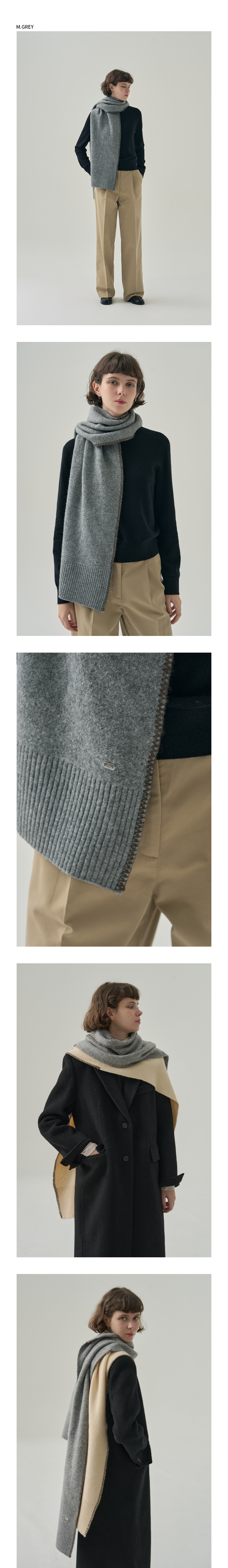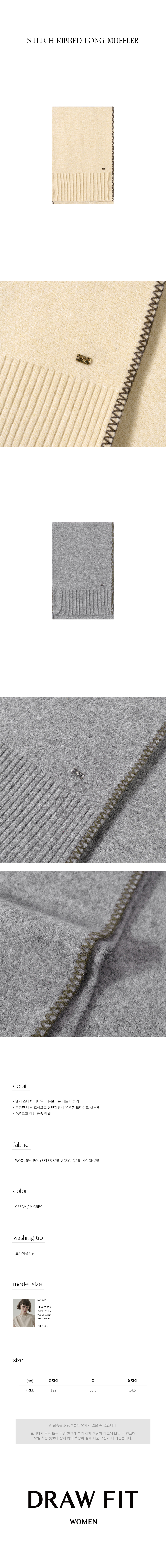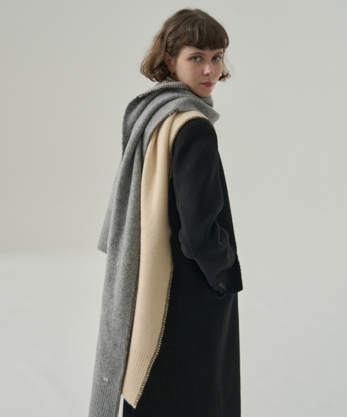 스티치 리브드 롱 머플러 [CREAM]