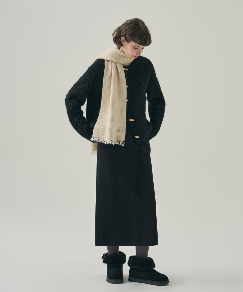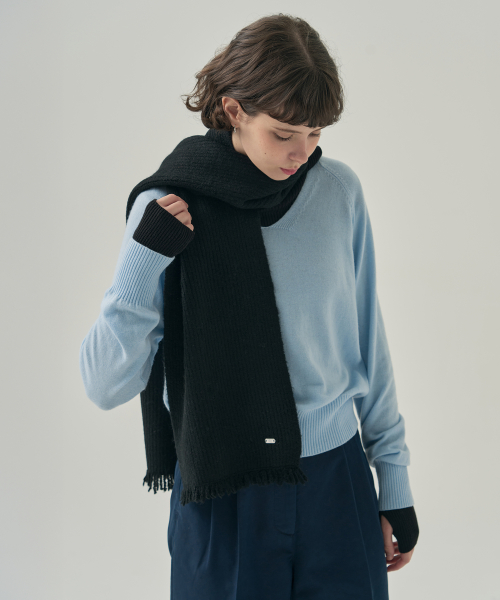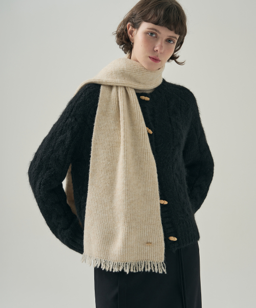 플러피 프린지 리브드 머플러 [OATMEAL]