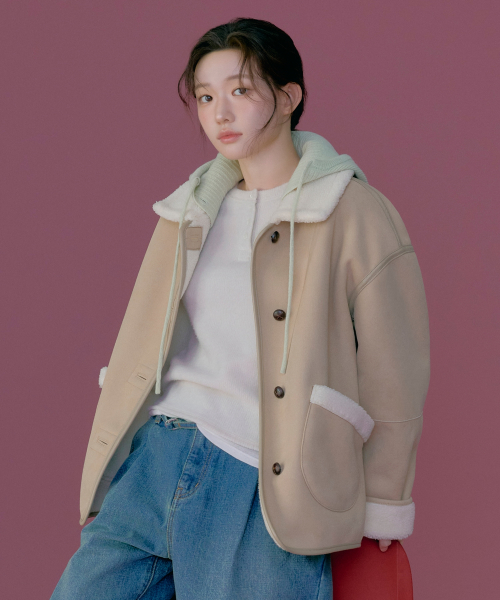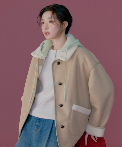 우먼 리버시블 시어링 자켓 Beige