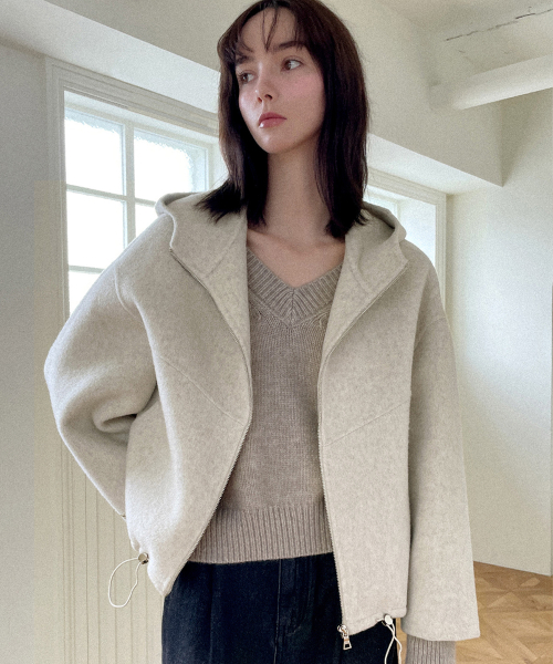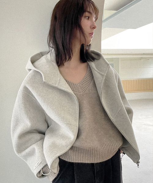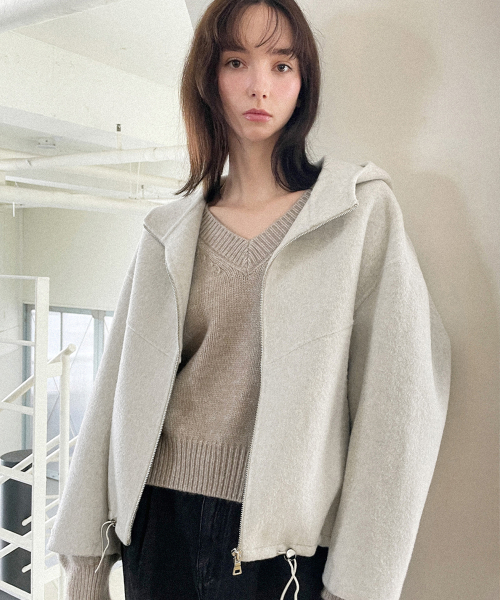 V NECK OVER FIT SWEATSHIRT OATMEAL