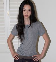 소프트 버튼업 숏슬리브 탑 - 그레이