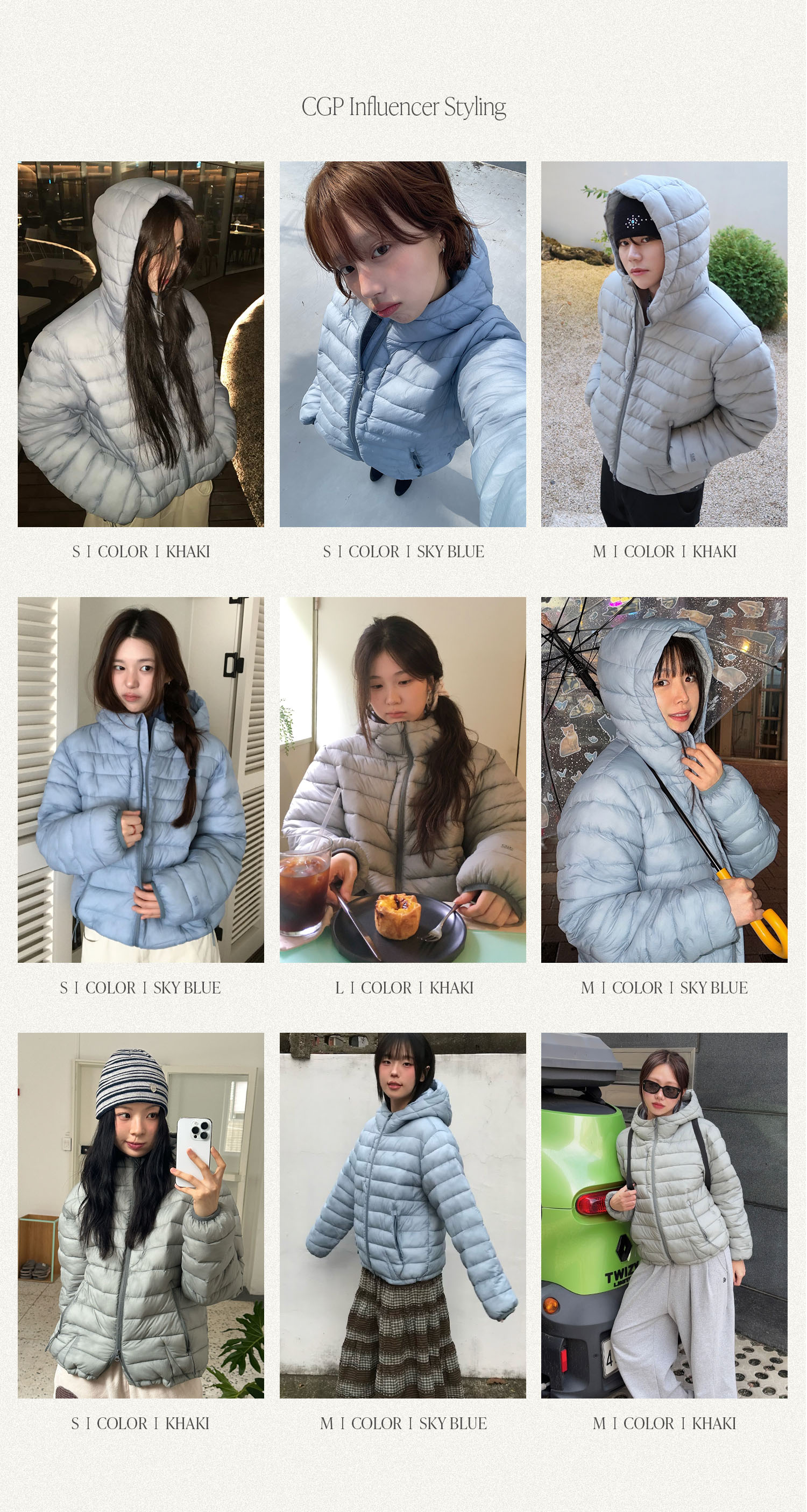 경량 후드 패딩_카키