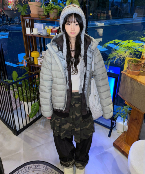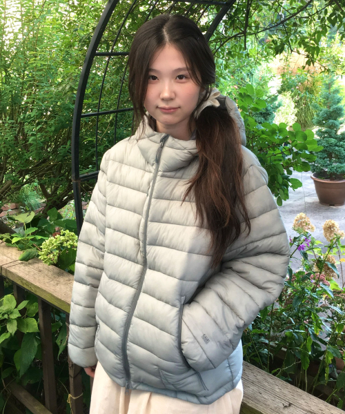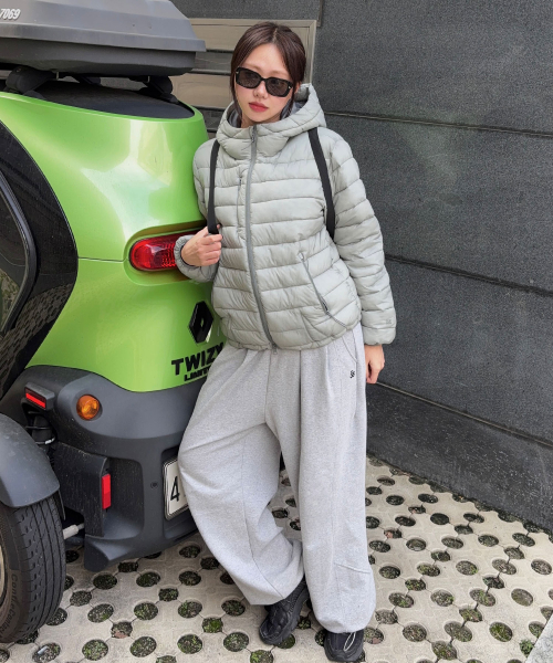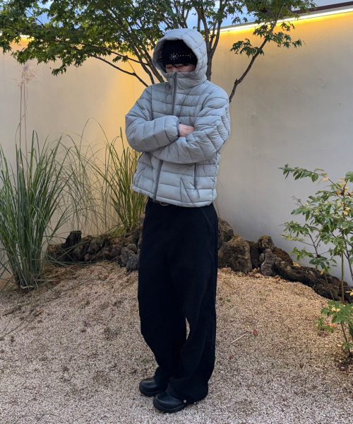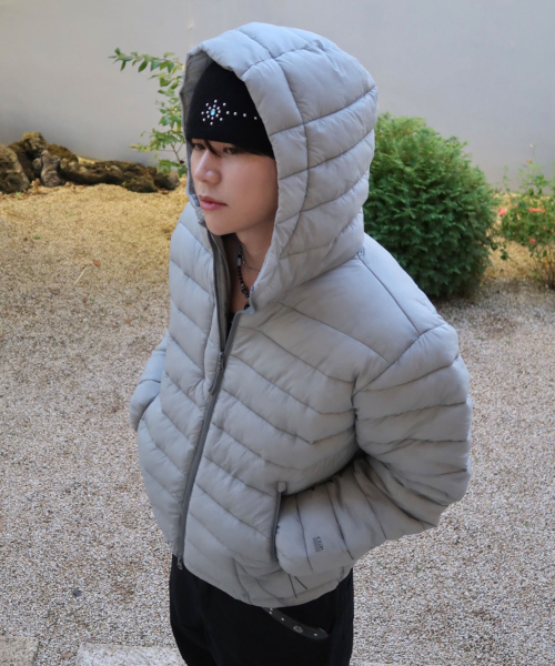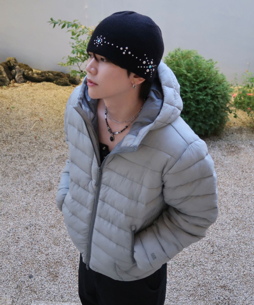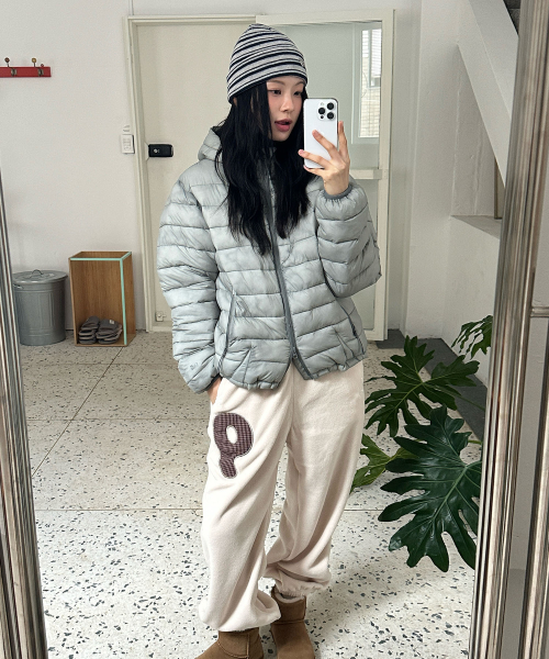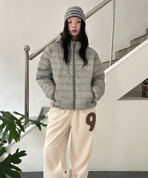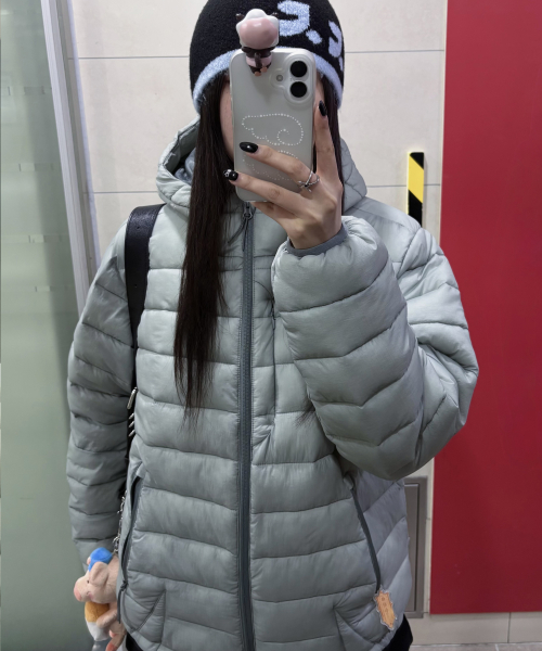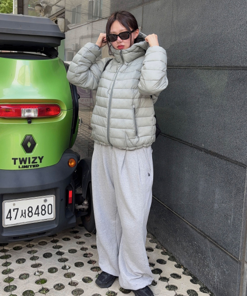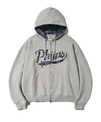 체크 스타테일 엘보우 패치 후드집업_그레이