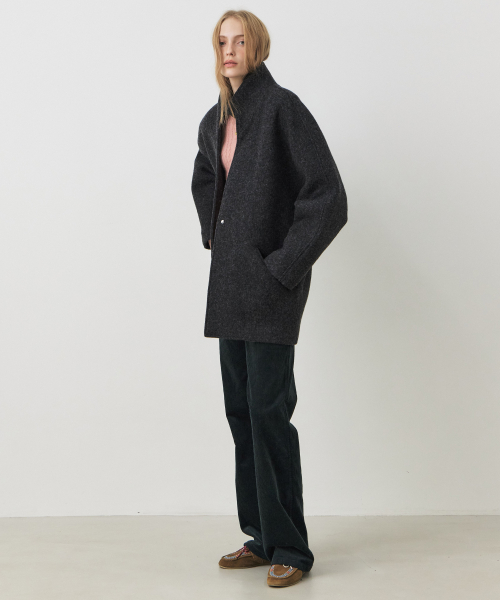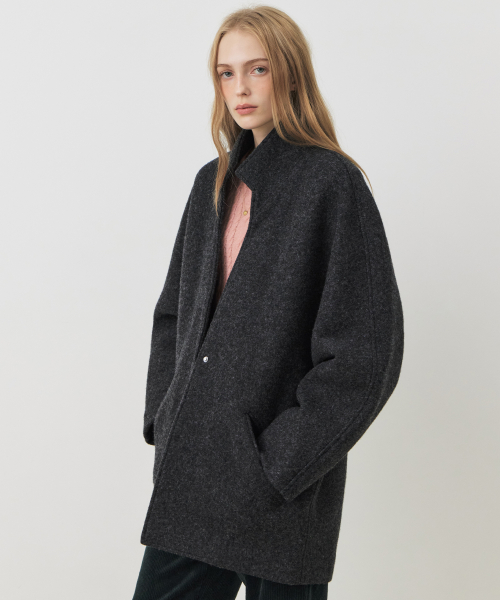 울 레이어드 카라 코트_CHARCOAL