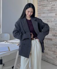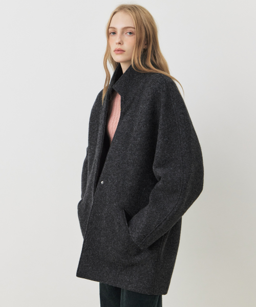 울 더블 브레스트 하프 코트_CHARCOAL