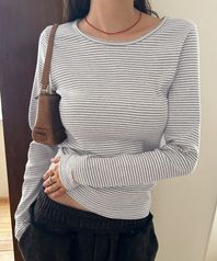 에센셜 골지 티-스트라이프 그레이